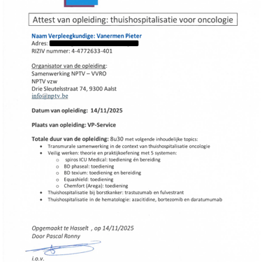 Oncologische inspuitingen worden bij de patiënt thuis toegediend, in de vertrouwde omgeving van het eigen huis. Wij hebben hiervoor een specifieke opleiding gevolgd en voeren deze handelingen zorgvuldig en volgens de geldende richtlijnen uit. We nemen de tijd, luisteren naar de patiënt en zorgen voor een rustige en veilige behandeling, zodat dit op een comfortabele en geruststellende manier kan verlopen.